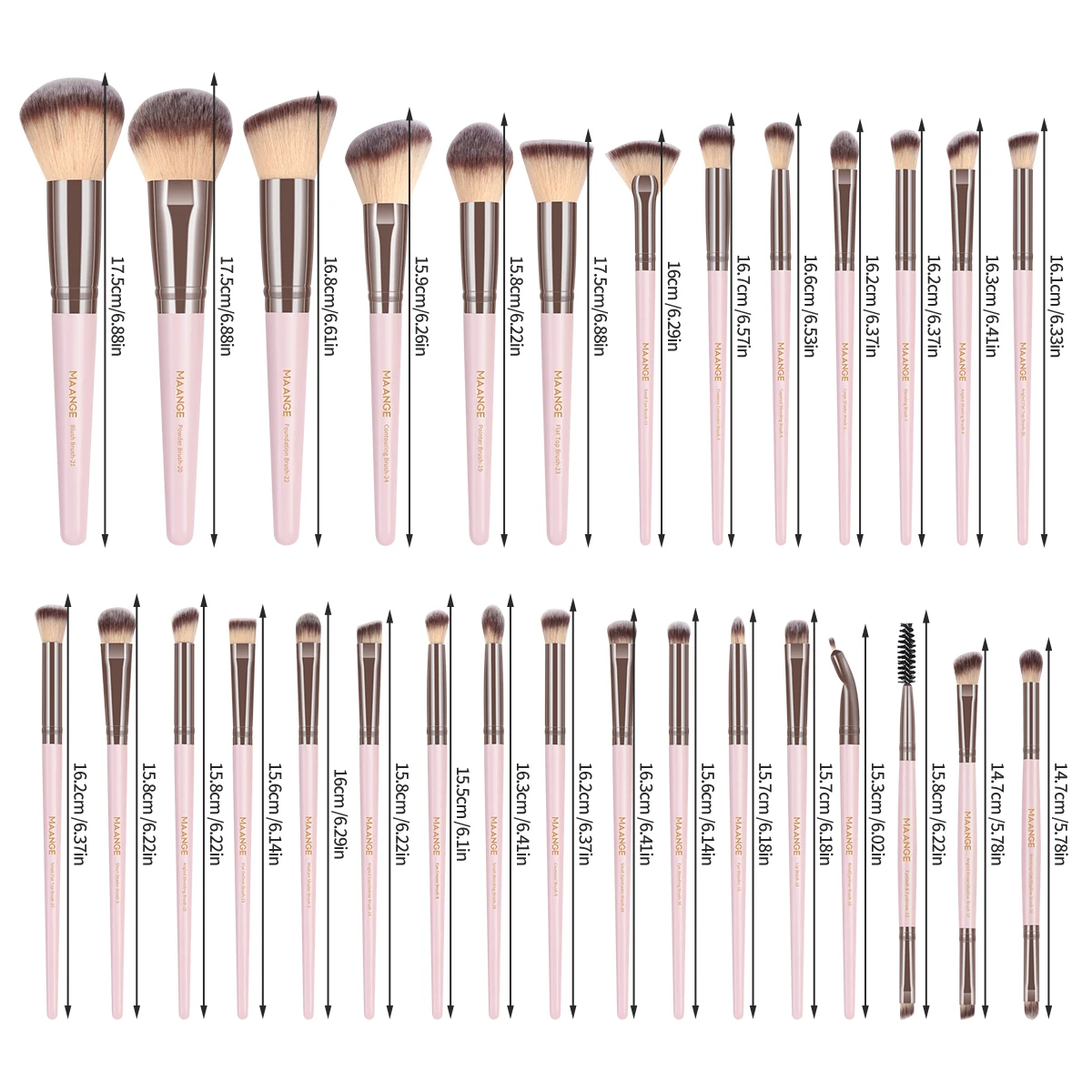 MAANGE 34PCS Makeup Tools Kit 30PCS Foundation Eyeshadow Blush Makeup Brush Cosmetic Makeup Remover Puff Sponge Set with Bag