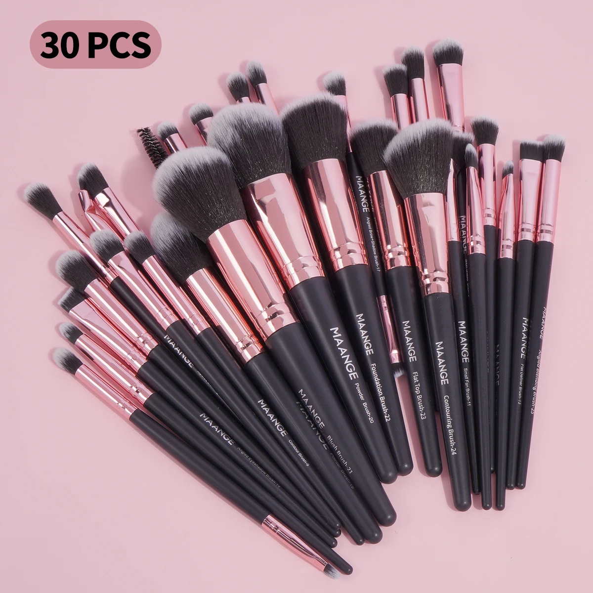 Package Include: 30PCs makeup brush with Bag, 1PCs makeup sponge, 1PCsMakeup Remover puff, 1PCs silicone brush cleaner pad